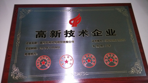 2013年11月,重慶市旺成科技股份有限公司依據國家《高新技術企業認定管理辦法》,經過國家高新技術企業認定管理工作專家組審查,榮獲國家高新技術企業。